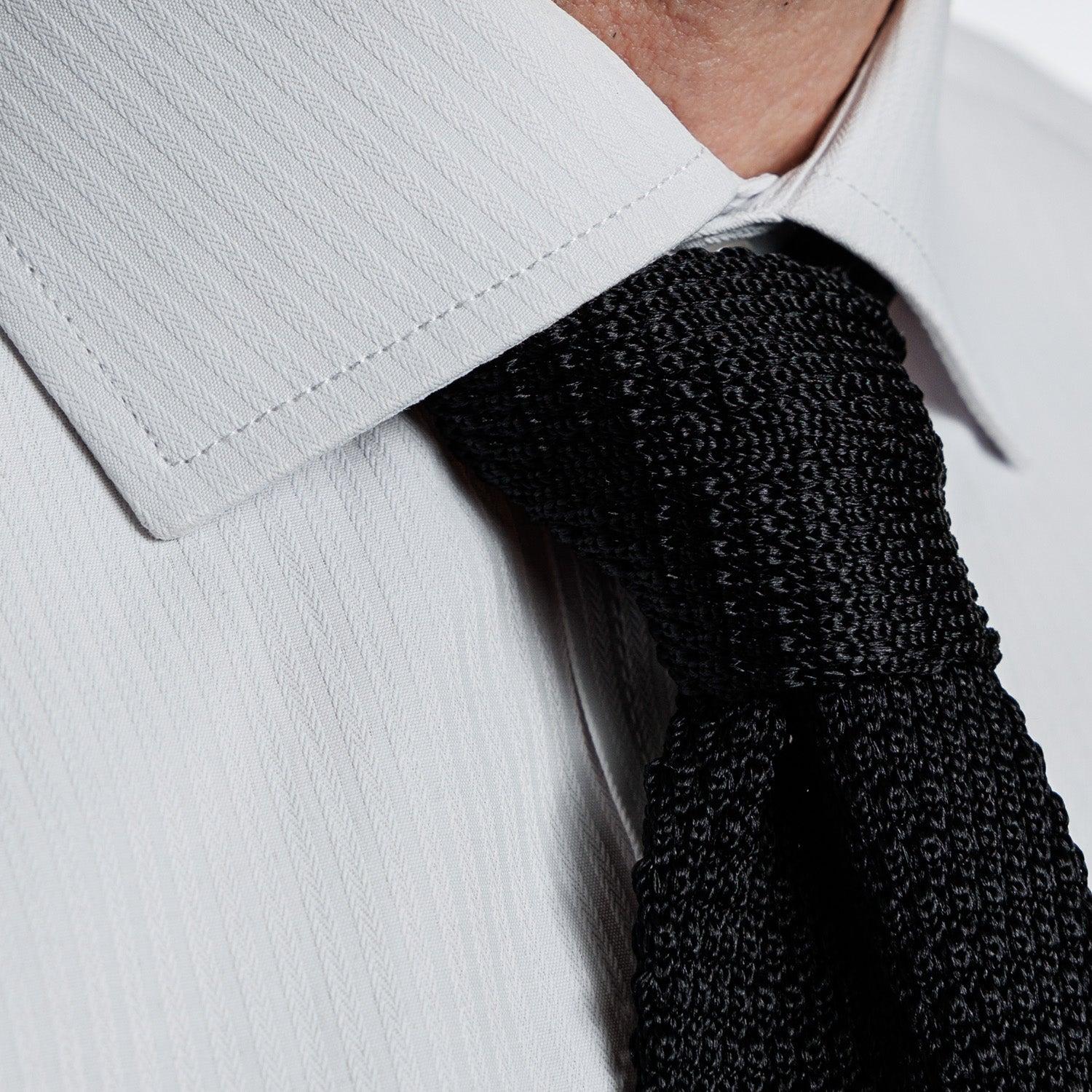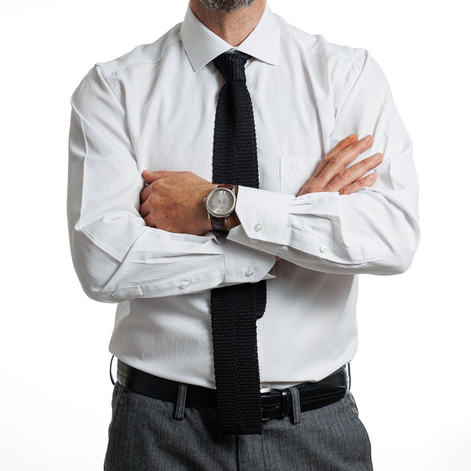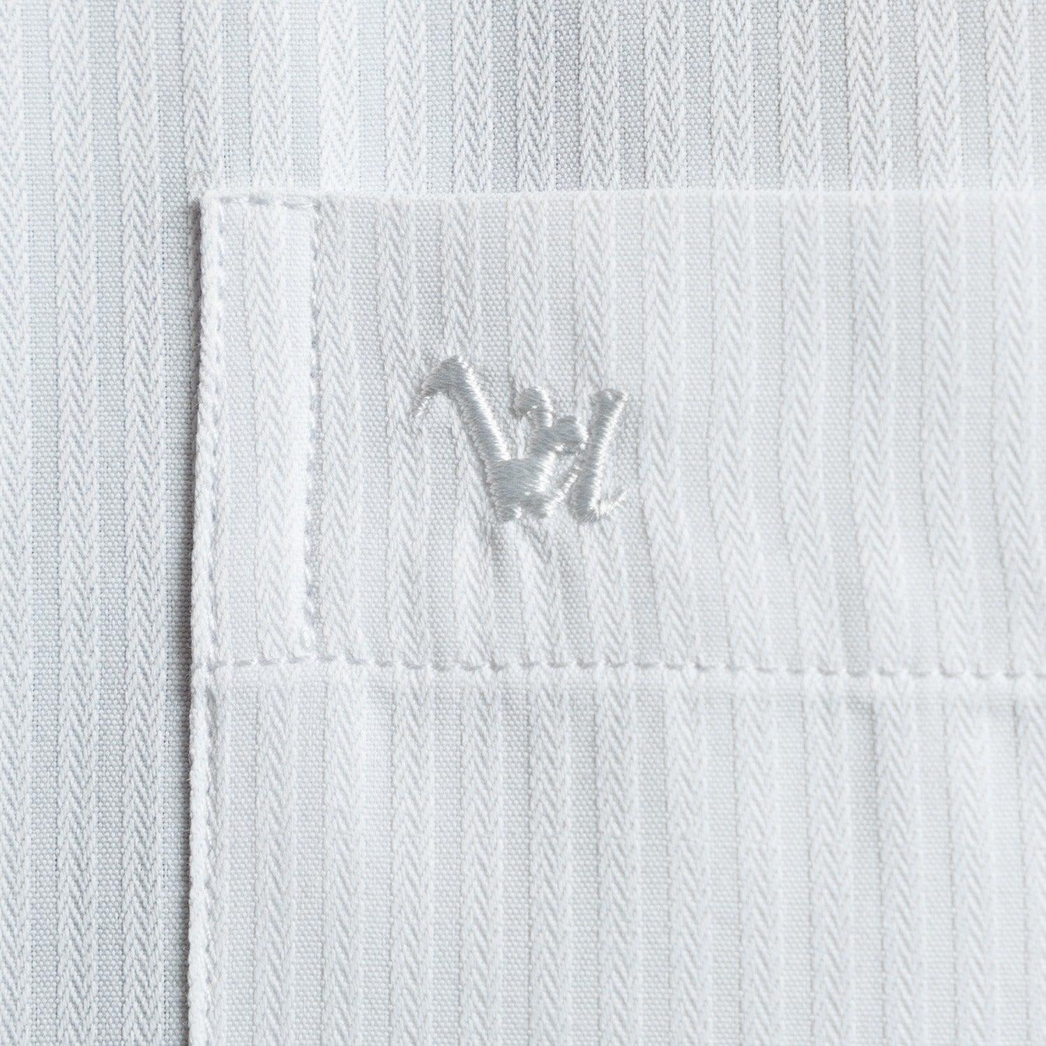 Tela con Textura blanca que forman listas muy elegantes. Cuello Italiano para usar con y sin corbata. Puño hexagonal, elegante y casual. Camisa con Bolsillo. Se puede combinar con cualquier pántalon ya sea casual o vestir y de cualquier color. Calce Regular apto para todo tipo de cuerpos. Entretelas 100% algodón de alta calidad que otorgan una mejor presentación, confort y duración a cuello y puños. Fácil de planchar y durable gracias a su contenido de poliéster. Lavar con agua fría o tibia en maquina o a mano. Al planchar cubrir cuello y puños abiertos con un paño blanco para evitar roce y no marcar las barbillas.
